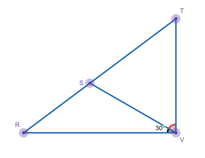 What is the measure, in degrees, of the angle that is complementary to ∠ RVS?
