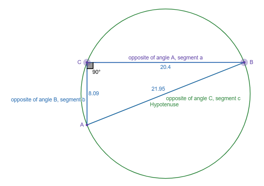 If the sum of the measures of two angles is 90°, then the angles are complementary. In the triangle ABC, m∠A = 25°, m∠B = 65° , m∠C = 90°