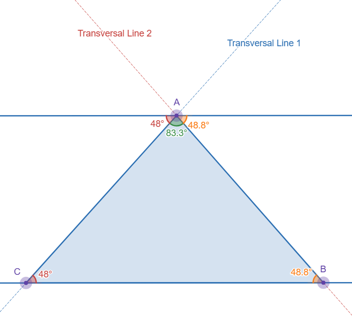 If two parallel lines are cut by a non-perpendicular transversal, which type of angles are not congruent?