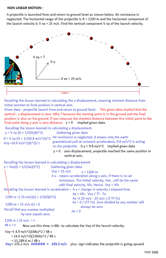 A projectile is launched from and return to ground level as shown below. Air resistance is neglected. The horizontal range of the projectile is