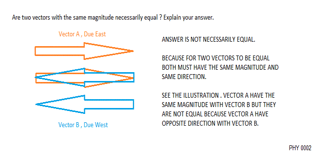 Step 9: Conclusion both vectors have the same length (also called magnitude) but both arrows have different direction. Therefore the two vectors are not the same or equal.