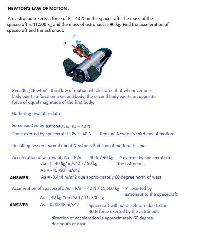 ANSWER: Acceleration of astronaut, Aa = m / s2