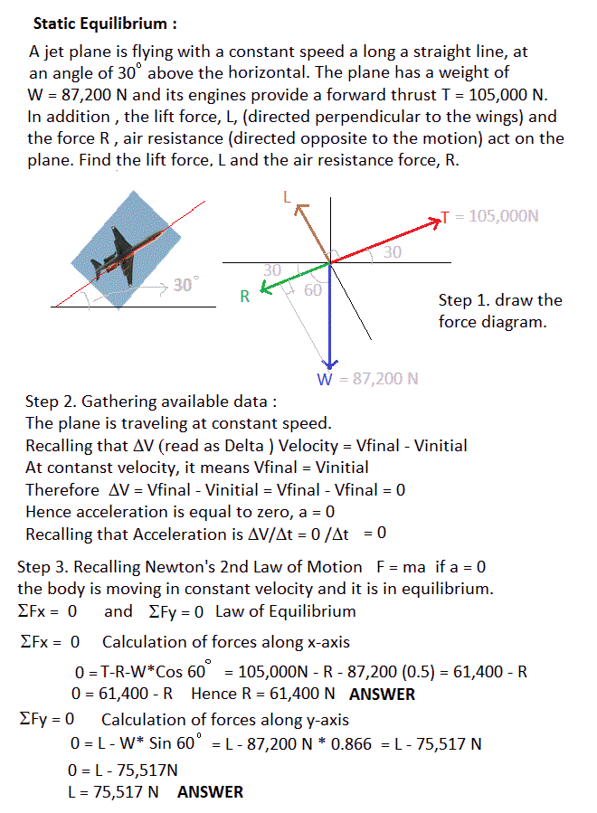 Solve for R, air resistance force and L, lift force :
