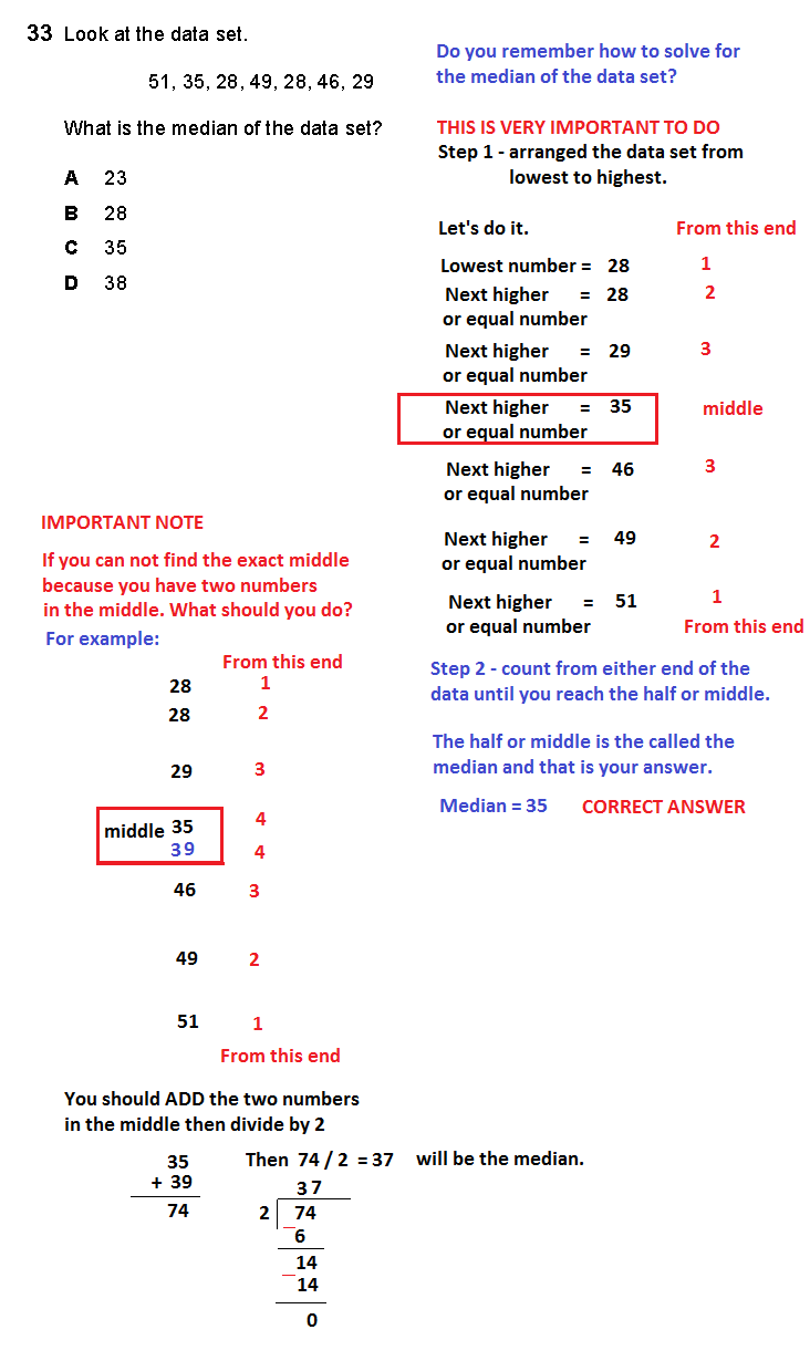 The State expected the 4th grade student to have early exposure to statistical data analysis concept of median. Median in statistical data analysis is usually a good starting point to make comparison. It is more or less at the center or middle or average. In statistical analysis word, when you say the word median, it means it follows a specific rules of analyzing the data. The first rule to follow is arrange your data set from lowest to highest. The second rule is find the middle of the data. You can count from the top or from the bottom to find the middle or median. See more explanation below.