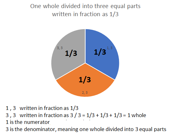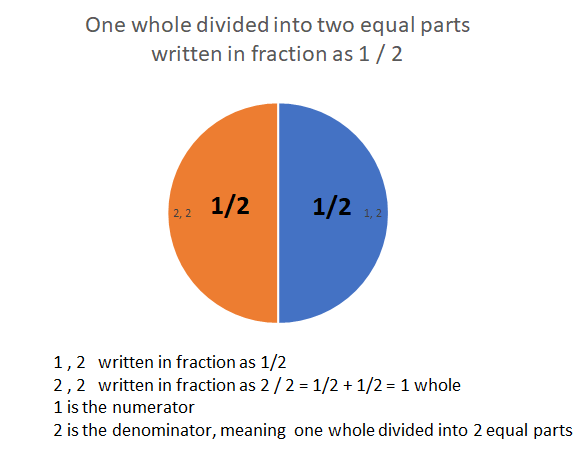 Below you see examples of fraction. Fraction can also be written in decimal. You will learn to understand and how to write in decimal in higher mathematics.
