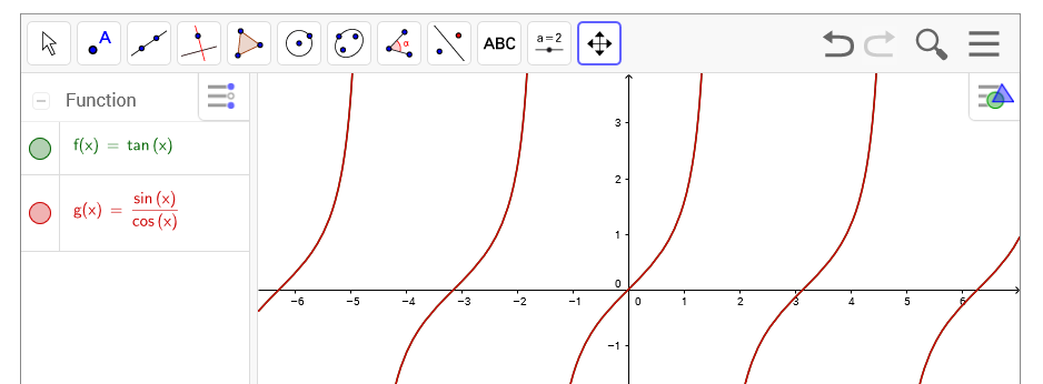 Step 4: Enter in input as is: g(x)=sin(x)/cos(x) press enter button in your keyboard