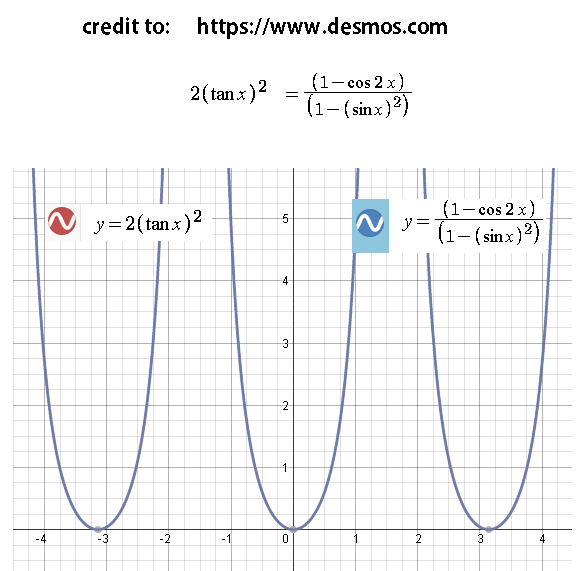 2(tan x)^2 = 1-cos (2x) / (1-(sin x)^2)