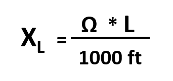 Ω , line reactance of cable, XL