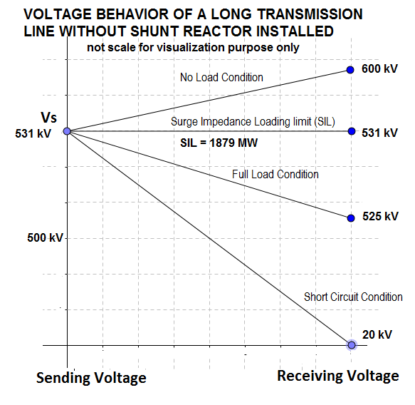 However, shunt reactors should be removed from the transmission line during full load conditions. Why ? because it's impedance will be added to the transmission line impedance , hence more impedance to limit the active power flow. Refer to above power transfer equation component, XL . You see the higher your total equivalent transmission impedance, XL, your power flow transfer is lower. Use the calculator above and increase XL = 200. What happen to your power flow value?