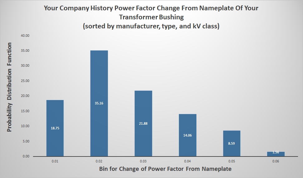 By automating the data collection and statistical analysis, transformer engineer will have the necessary tool to monitor new Power Factor test measurement of transformer bushing for any outlier or listing of 2 or 3 standard deviation from their population of transformer bushing fleet to generate the list of bushing for more detailed analysis using trending method. This insight in turn will trigger maintenance strategy, operation strategy, replacement strategy, specification update, vendor management, purchasing strategy, and financial planning.