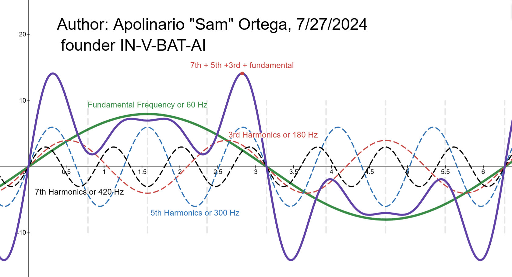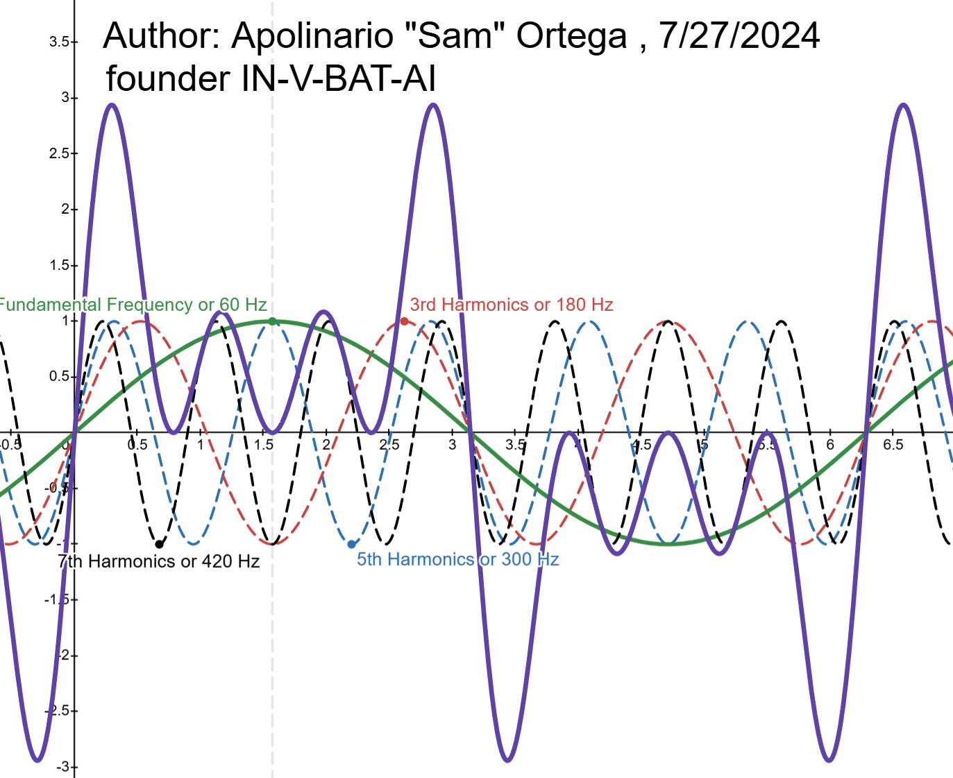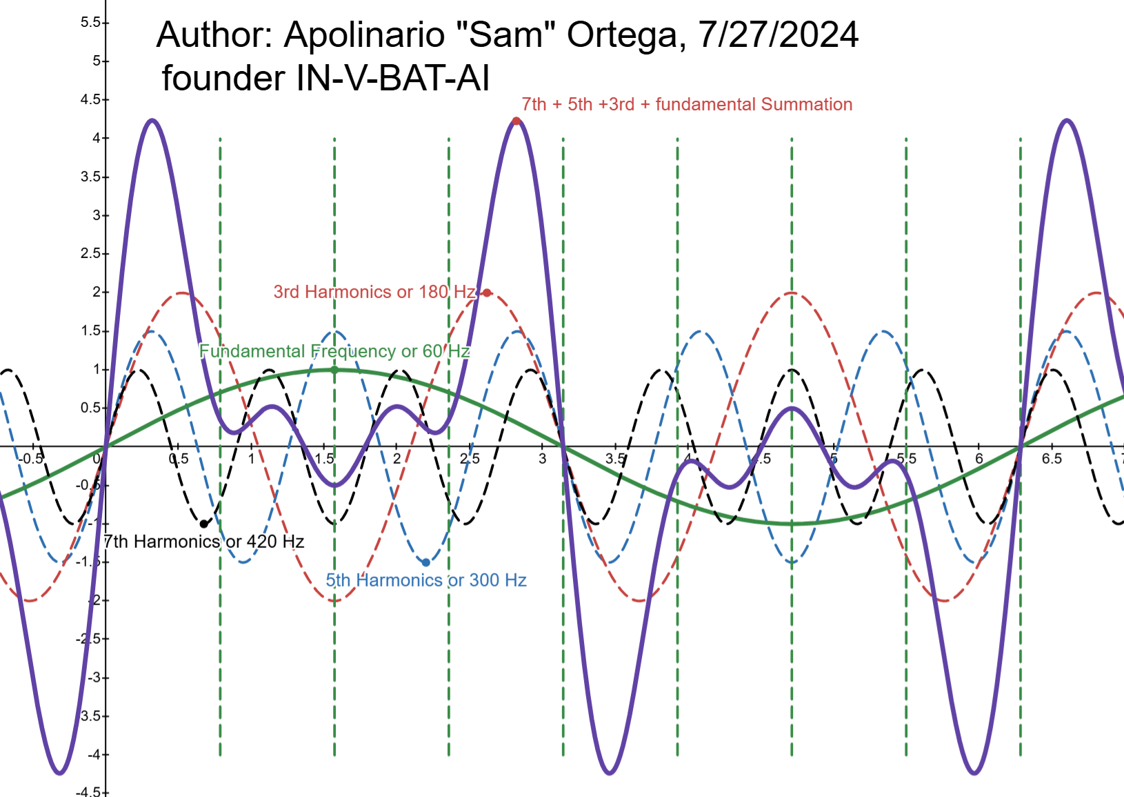 Fundamental (60Hz) + 3rd (1 peak) + 5th (1 peak) + 7th (1 peak) Harmonic Addition