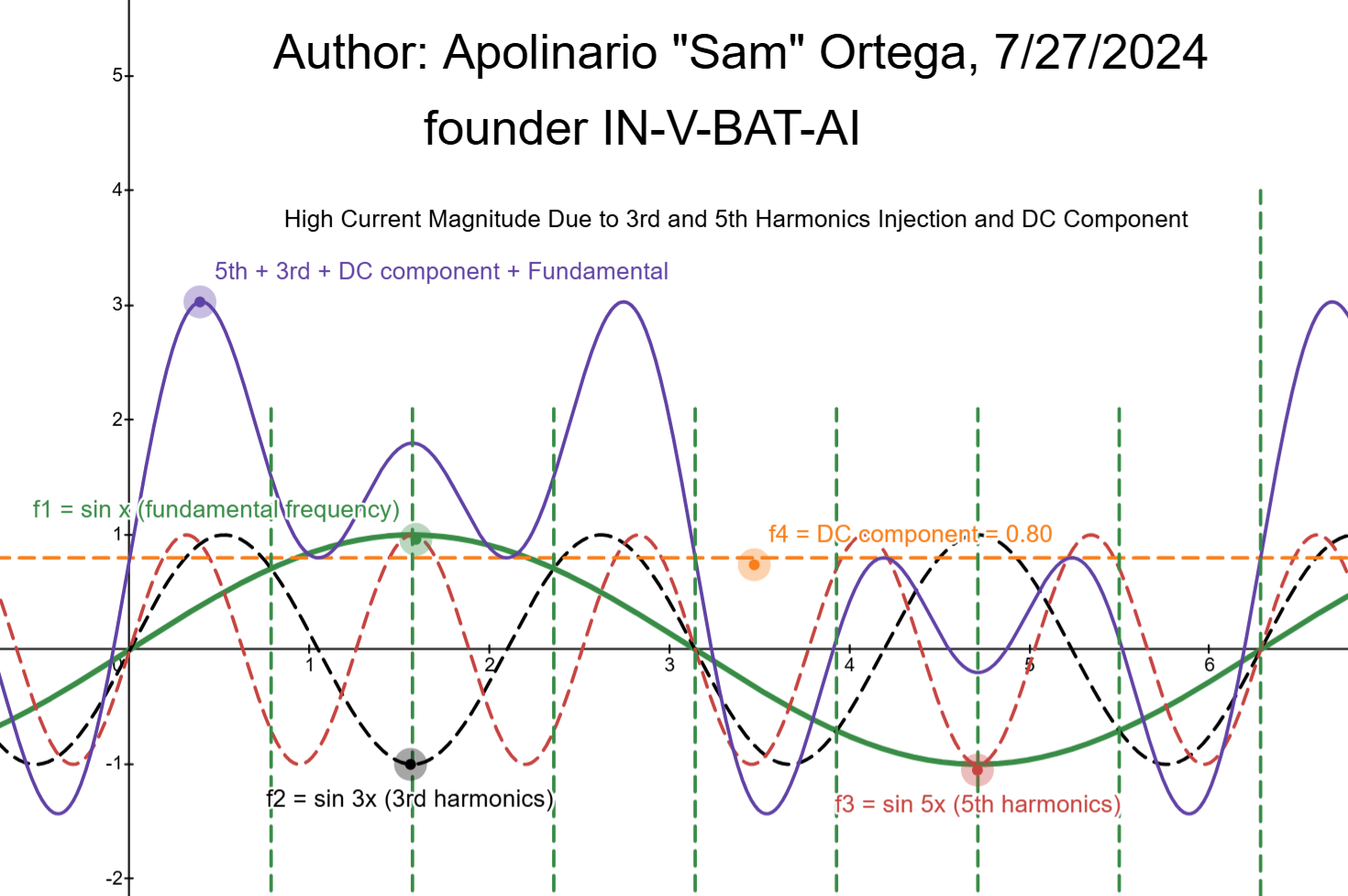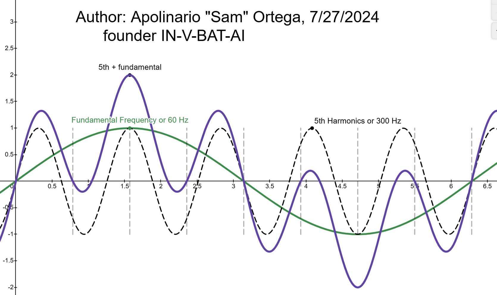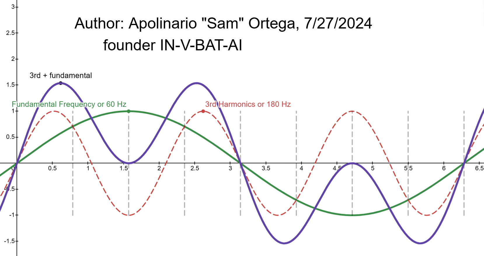 Fundamental (60Hz) + 3rd (1 peak) + 5th (1 peak) + 7th (1 peak) Harmonic Addition