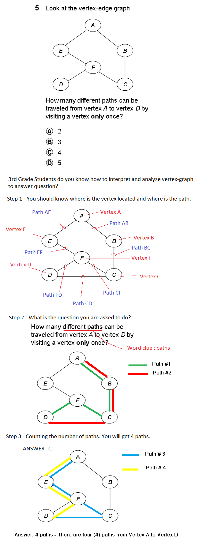 The State expected 3rd grade student to have early exposure to the concept of Hamilton Path and Circuit. A Hamilton Path and Circuit is simple path in a graph that passes through every vertex exactly once. Since this is a whole number counting problem so it was an appropriate challenging lesson to learn for a 3rd grade students.