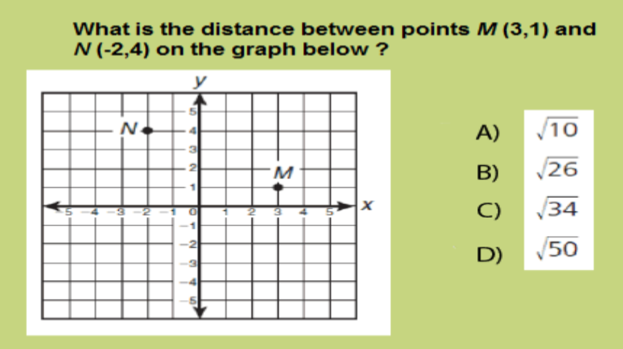 Points (-1, 8) and (3, 5) lie on a coordinate plane. What is the distance between the two points?