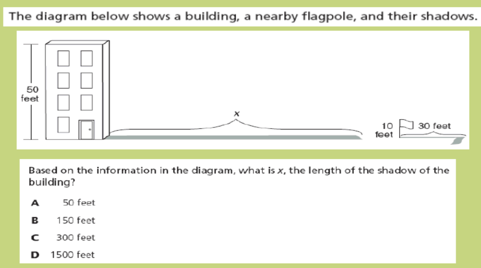Next Next post: The diagram below shows a building, a nearby flagpole, and their shadows. Based on the information in the diagram, what is x , the length of the shadow of the building?