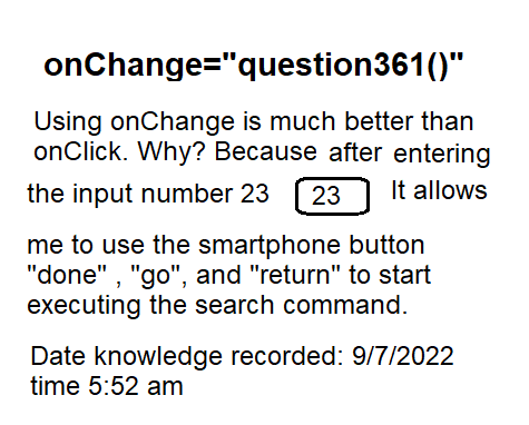 Show below is my explanation. Actual example can be shown using my smartphone Apple I-phone SE go to website 361.html   go to Enter 1 to 304 input box. Then enter number 23.