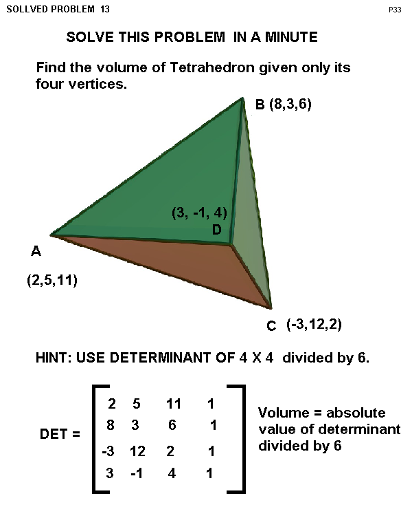 Application of Determinant 4 x 4 matrix, Volume of Tetrahedron