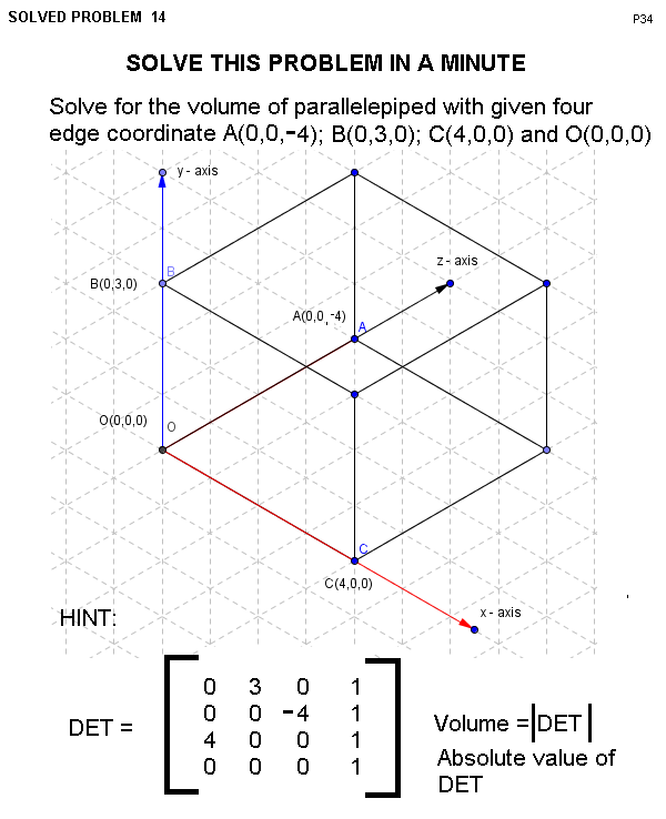 Application of Determinant 4 x 4 matrix, Volume of Parallelepiped