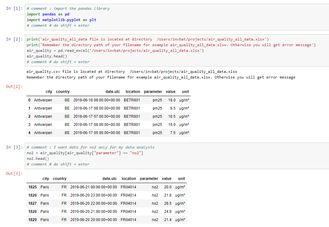 Training on how to display the first two records of each air quality station ![]() |