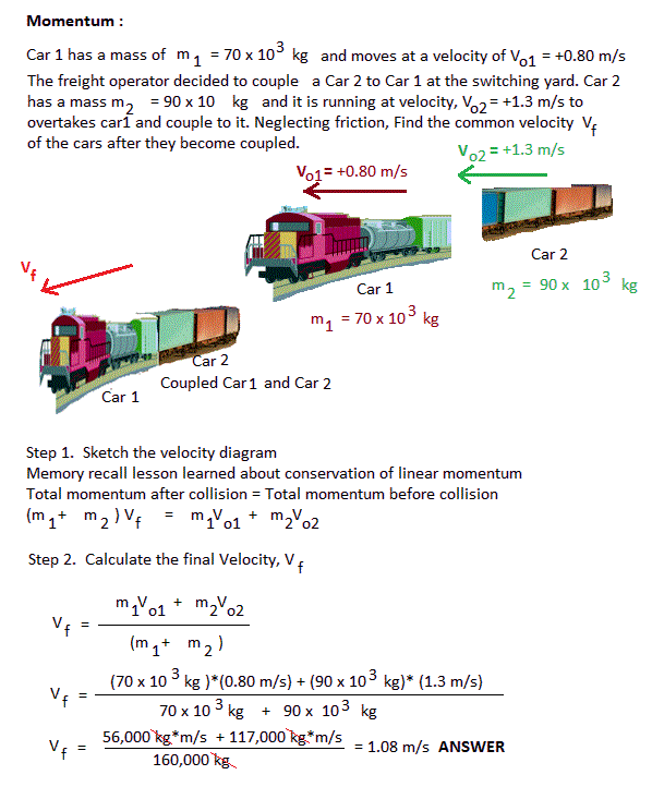 ANSWER: Common velocity of Car 1 & Car 2, V f =