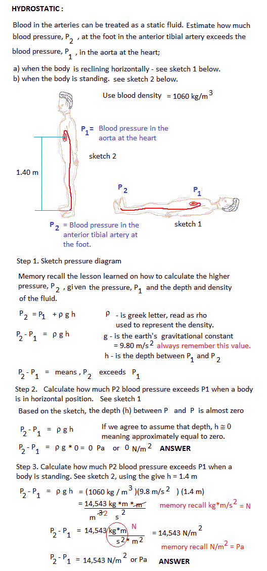 ANSWER: Blood pressure difference at the foot = Pa or N / m 2