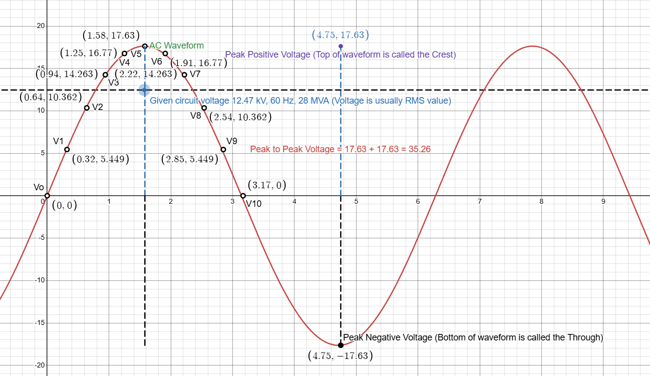 The table below is an example of how to calculate the RMS value of a sine waveform given a 1/2 cycle data points (10 points) see above image Figure 1.