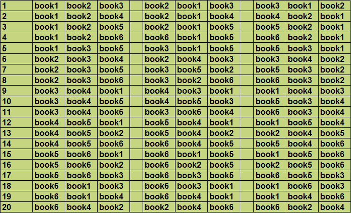 Using the above table there are only 20 possible distinct combination or 20 possible ways to select 3 books out of the six books.