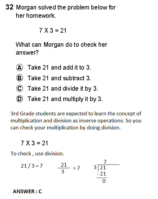 NUMBERS AND OPERATION & ALGEBRA are common core content. Common core content means it touches K-12 students. The State expected 3rd grade students to master multiplication and its inverse operation, division.