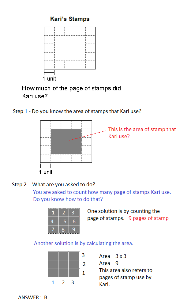 The State expected 3rd grade student to master and understand the concept of area as multiplication of square unit. The unit can be feet, so the area is square feet. The unit can be in centimeter, so the area is square centimeter.