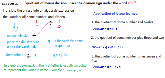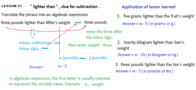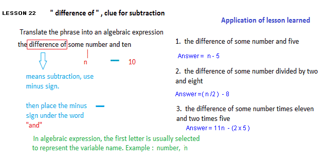 TRANSLATING PHRASE INTO ALGEBRAIC EXPRESSION